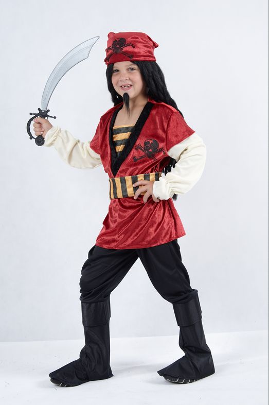 Incluye: Camisa, Pantalones con Cubrebotas, Cinturón y Pañuelo pirata