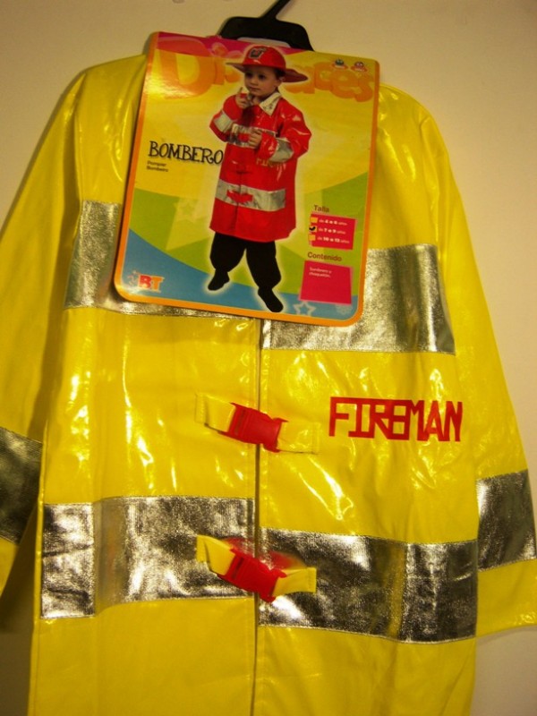 Pantalones NO incluidos. Sombrero rojo y chaqueta amarilla.