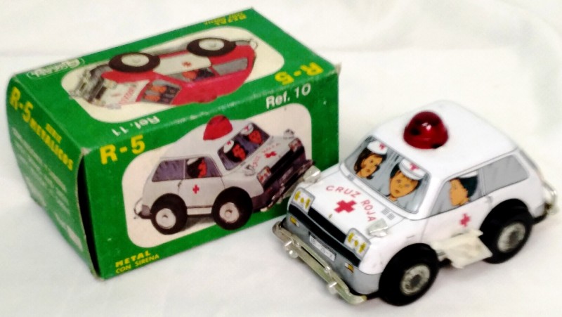 Coche de metal R-5 de la cruz roja con resorte y sirena de Gozan.