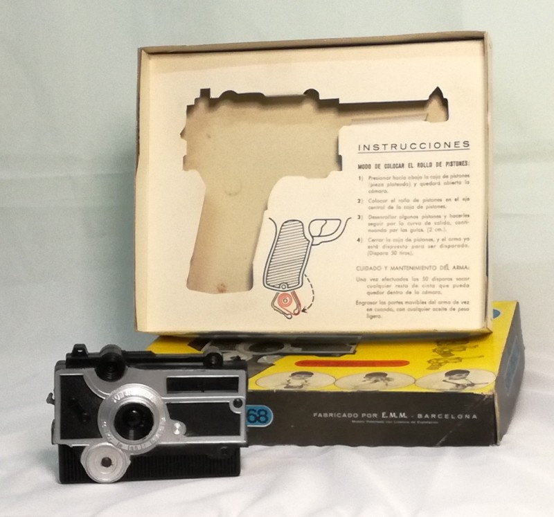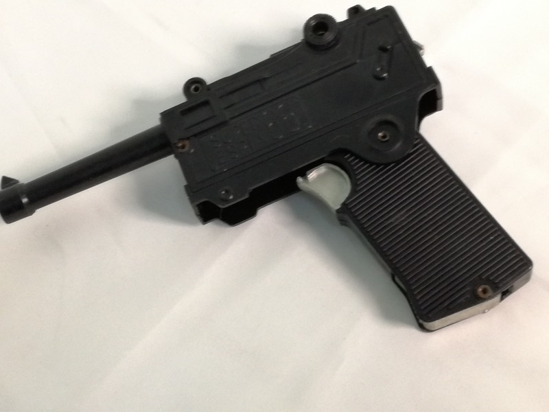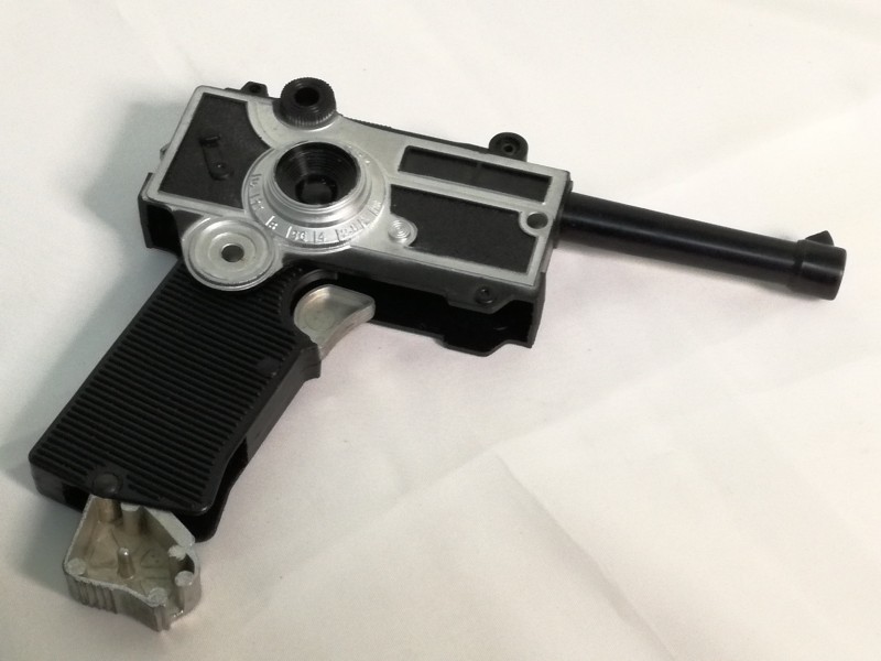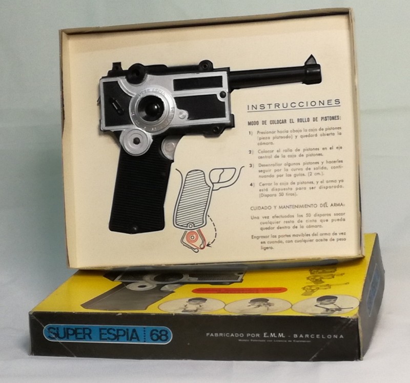 Pistola tipo Luger del SUPER ESPIA convertible en cámara fotográfica. Juguete de los años 60 fabricado por E.M.M. BARCELONA, basado en los gadgets de la serie Superagente 86. Funciona correctamente. Juguete en pecfecto estado. (producto nuevo nunca vendido, procede de nuestra tienda, la caja en muy buen estado de conservación) Ver fotos.