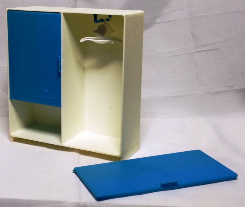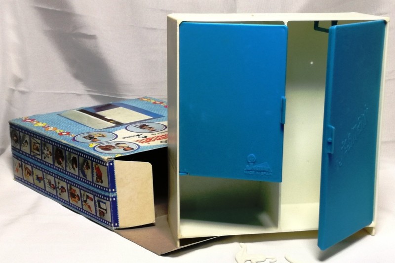 ARMARIO JESMARIN fabricado en España en los años 70. Incluye el armario y dos perchas.(producto nuevo nunca vendido, procede de nuestra tienda, la caja presenta defectos y roces producto del paso del tiempo y de la manipulación en el almacen) Ver fotos (la puerta grande está rota, aunque se sujeta para exposición)