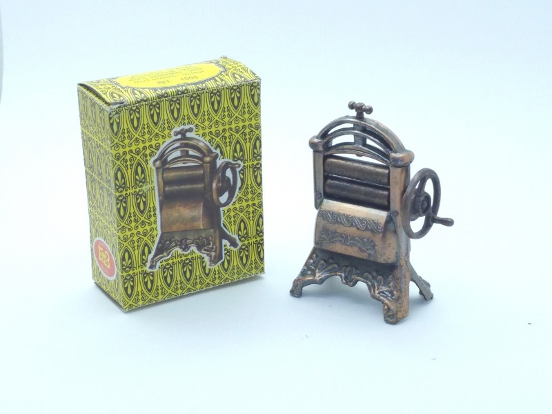 Afilalapiz o sacapuntas de metal de Juguetes EMB Marti con forma de secadora antigua. (producto nuevo nunca vendido, procede de nuestra tienda, la caja presenta roces y defectos propios del paso del tiempo y de la manipulación de almacén)