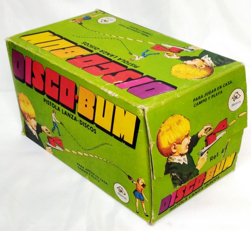 Juguete lanza discos Disco·Bum de RIMA, año 1972. (producto nuevo nunca vendido, procede de nuestra tienda, la caja presenta ligeros roces producto del paso del tiempo y de la manipulación en el almacen) Ver fotos.
